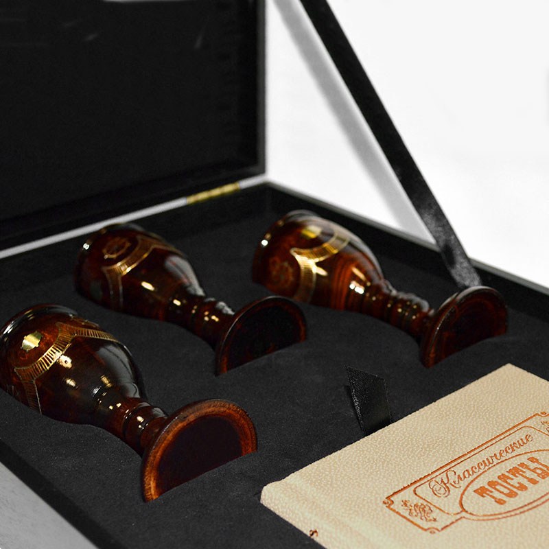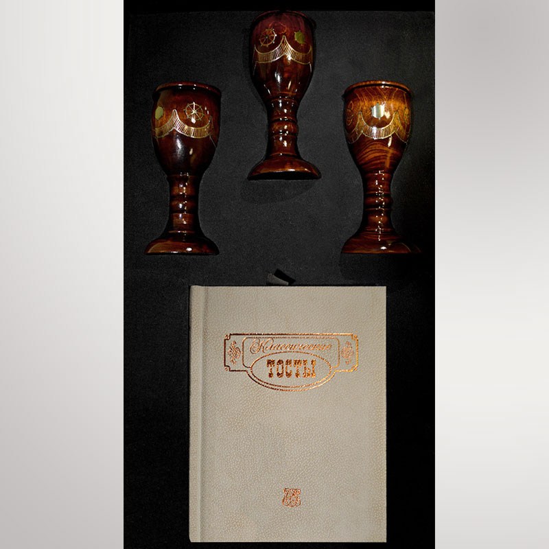 Когда эмоции переливаются через край и дружный тост за юбиляра уже отразил все стороны его прекрасной сущности – на помощь приходят «Классические тосты». Это книга, которая не даст Вам говорить банально, потому что за Вашей речью будут стоять классики прозы и поэзии. Надо лишь добавить к здравице пару классических афоризмов. Они как тонкая серебряная вязь на трех рюмках из вишневого дерева, в которые мастер-ювелир вбивал тонкие пластинки из чистого серебра. Он создал три маленьких шедевра – с орнаментом из серебра, чтобы Вы могли вручить их вместе с тостами и пожеланиями долгих лет и бесконечного здоровья своему другу, коллеге или начальнику.