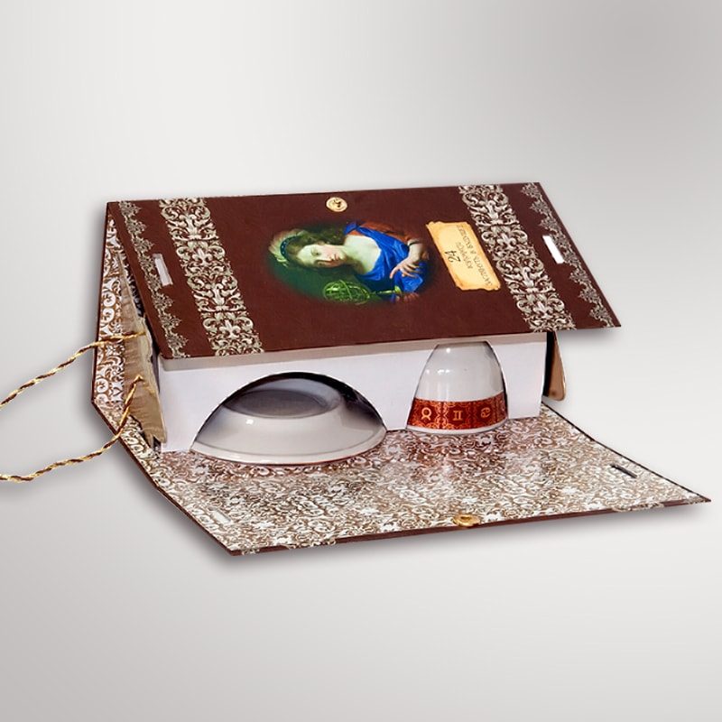 Эти наборы не имеют аналогов. Продукция запатентована. Оригинальное, и в то же время, очень простое решение, которое позволяет объединить небольшую книгу (которая является подарочным коробом-трансформером) и небольшой, но очень полезный подарок. В этом наборе - пара чашка+блюдце со знаками зодиака и планетами - для гаданий и точная копия волчка Нострадамуса.