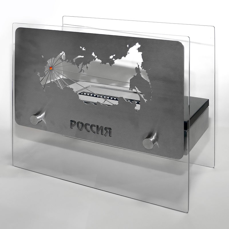 Материалы, из которых изготовлен камин - высокопрочная толстая сталь и специальное жаропрочное стекло. Во внешнем декоре использована нержавеющая сталь и подлинный кристалл Swarovski.