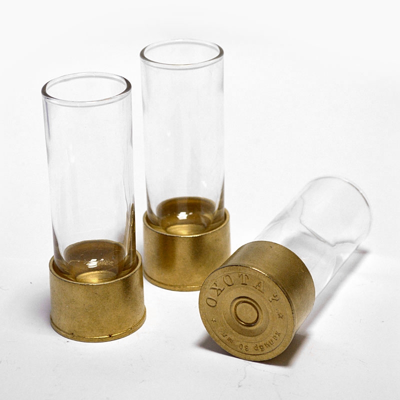 Мужской сувенир. В основе подарочного набора - три стопки-патрона. Стеклянные стопки из прозрачного стекла, с донышком из литого металла - тяжелые и увесистые. Это отличный мужской сувенир. Компактнй, прикольнй, недорогой, но выглядит очень серьезно и очень необычно.