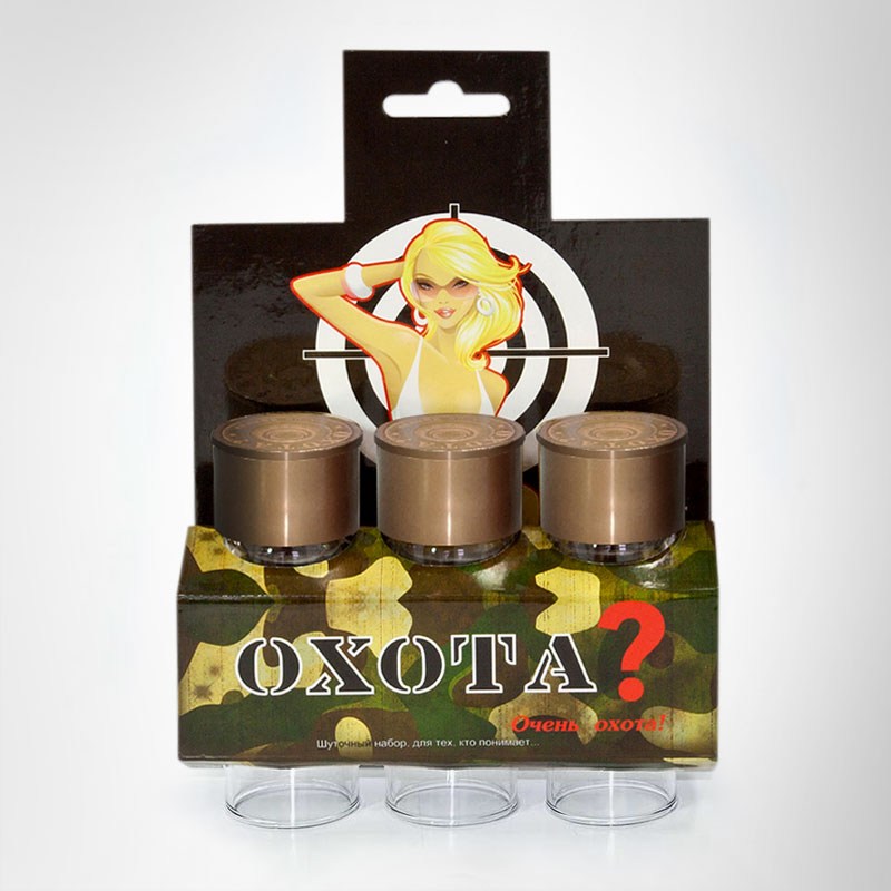 Подарочный набор из трех стопок-патронов "Охота?" (пластиковые донышки)